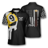 Billiard 9 Ball Skull American Flag Pattern Custom Billiard Polo Shirts for Men, Billiard Shirt Team