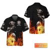 Poker Four Of A Kind Aces Skull On Fire Personalized Name 3D Hawaiian Shirt For Poker Players