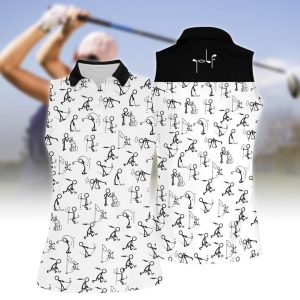 3D All Over Print Stickfigures Playing Golf Women Short Sleeve Polo Shirt Sleeveless Polo Shirt