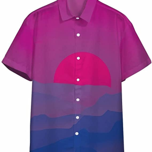 Bisexual Pride Sunrise Hawaii Shirt, Hawaiian Short Sleeve Shirt, Bisexual Pride Hawaiian Shirt